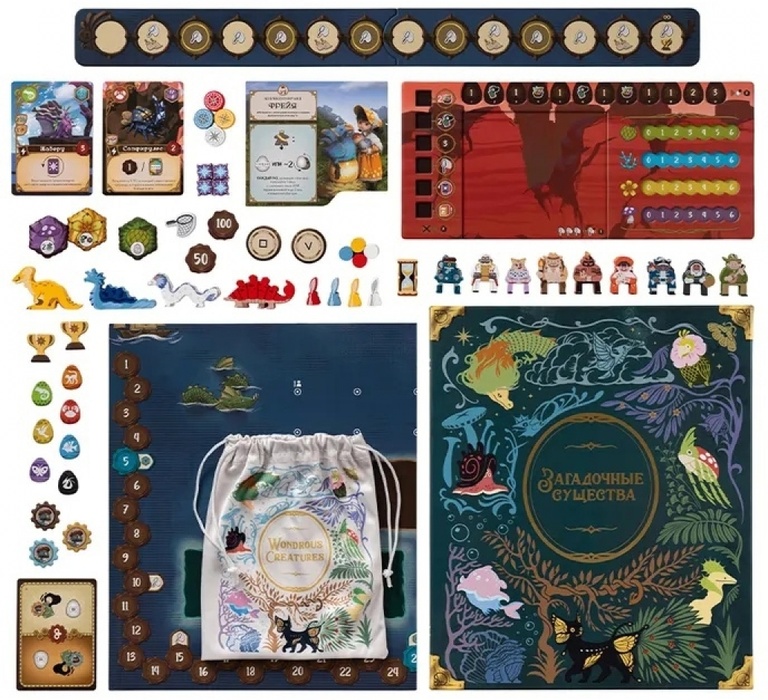 В "Загадочных существах" начинается настоящая гонка за редчайшими видами! Отряд исследователей под предводительством капитана отправляется в экспедицию: исследовать земли, приручать невероятных существ и собирать ресурсы. Чем больше экзотических обитателей вы поселите, тем мощнее станет ваш заповедник – а вместе с ним и шансы на победу! Игра сочетает простые правила с глубокой тактикой: эффектные комбинации карт запускают каскад действий, превращая один ход в блестящий стратегический манёвр. Но осторожнее – здесь всё меняется в мгновение ока!
